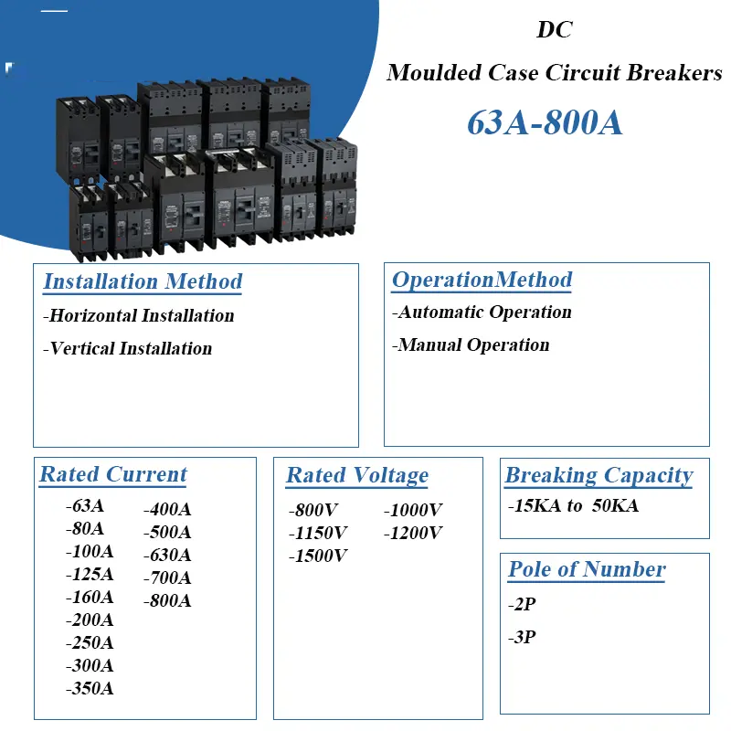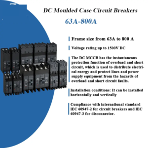 TM SKY LIMITED DC MCCB is used in the voltage grid circuits with rated voltages from DC250V to DC1500V and rated operating currents from 63A to 800A. This circuit breaker has an overload and short-circuit instantaneous protection function, which is used for distributing electric power and protecting lines and power supply equipments from the hazards of overload and short-circuit barriers.