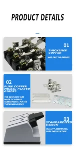Solar Disconnect Switch is 20% smaller than other manufacturers, reducing installation size. Low temperature rise, no capacity reduction under 50℃. Meet the requirements of PV grid-connected box, improve the scope of application of the product. 125 Wiring screws can withstand a torque of 5N.m can be achieved without removing the top cover wiring, improve production efficiency. Stainless steel double spring clamps are used to prevent poor contact caused by alternating heat and cold. Flame-retardant DMC high-strength resin. High conductivity copper, tin-plated to prevent oxidation.